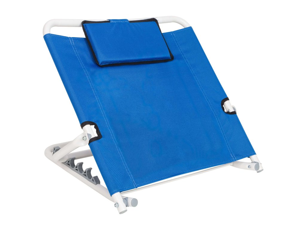 Oceľová konštrukcia v bielej farbe tvorí rám opierky. Opierka je vyrobená z nylonu, ktorý je vzdušný a dobre sa umýva - stačí prejsť mokrou handričkou. Penový vankúšik pod hlavu poskytne väčšie pohodlie pri opretí.