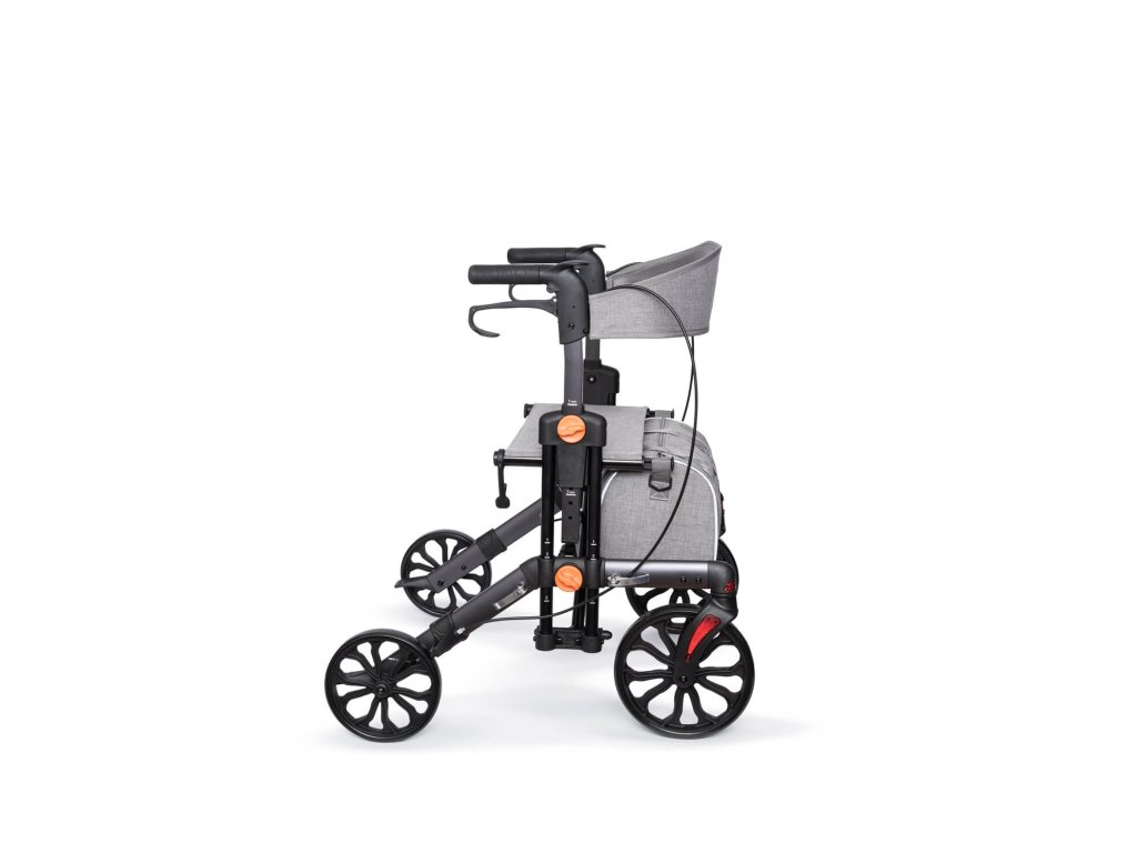 Ak chodítko nepotrebujete, ľahko ho sklopíte - stačí nadvihnúť sedátko a rám sa sklopí. Takto zložené má rozmery 75 x 30 x 78 - 103 cm (v závislosti na tom ako máte nastavené riadítka). Po odmontovaní nožičiek s kolieskami a riadítok ho viete ešte viac zložiť.