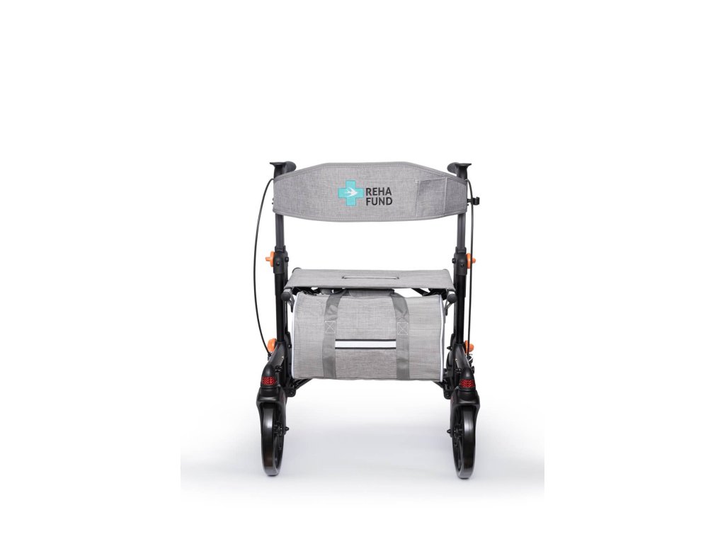 Polstrovaná široká opierka poskytne oporu a komfort pri odpočinku. Chodítko je vybavené odnímateľnou taškou na odkladanie osobných vecí, či malého nákupu a držiakom na palicu.