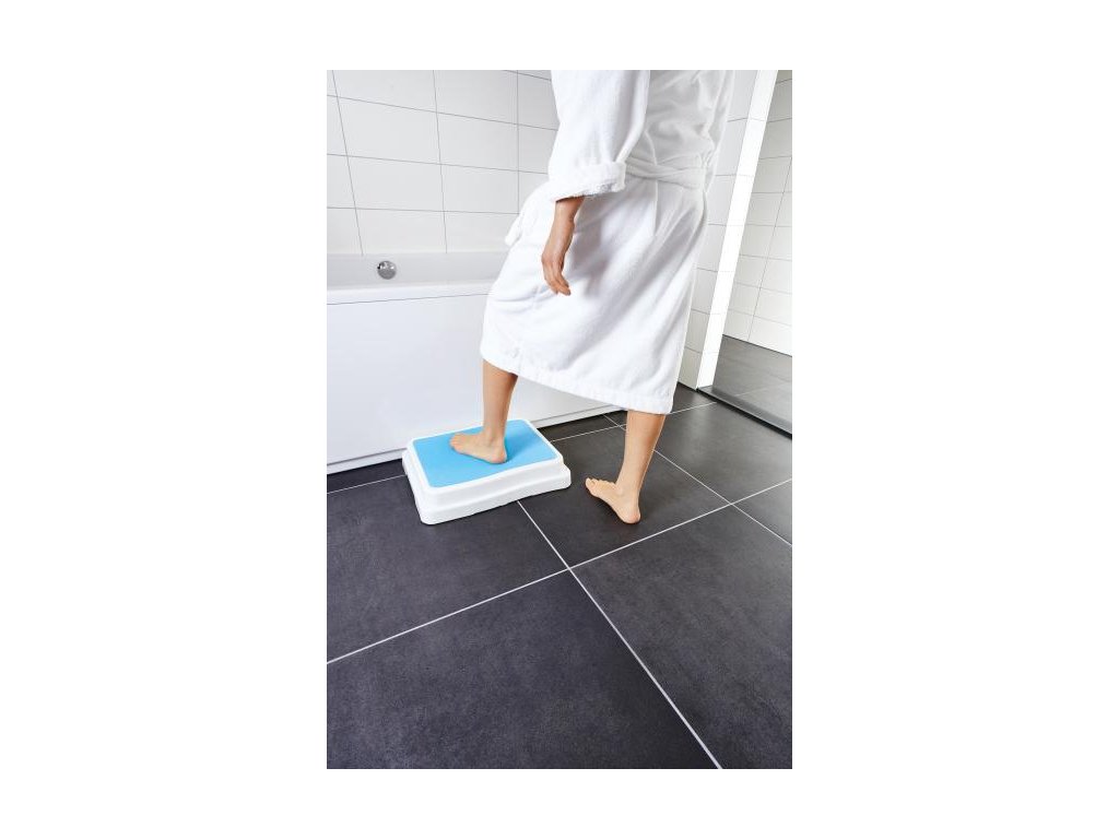 Schodík k vani umožní ľahší a bezpečnejší prístup do vane. Možno sa vám to zdá ako nepotrebná vec, ale skúste sledovať vášho blízkeho seniora ako vchádza do vane, či mu to robí ťažkosti. Ak áno, uľahčite mu to, bude vám vďačný. Aj 10 cm urobí malý zázrak. Schodík veľmi pomôže aj pri vystupovaní z vane. Vychádzanie z vane je naozaj obtiažne, keďže spodok vane je o niečo vyššie ako podlaha v kúpeľni, takže senior vlastne zostupuje na nižšiu úroveň a pritom musí vysoko zdvihnúť nohu a udržať rovnováhu.