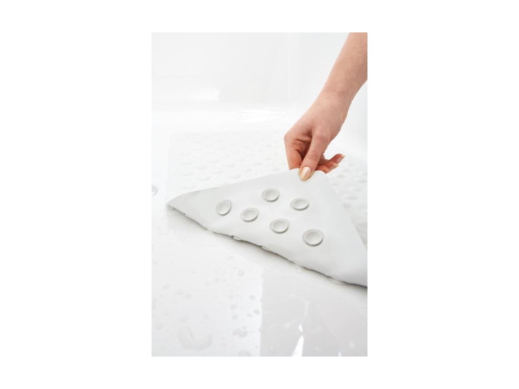 Protišmyková podložka je posledným kúskom skladačky pre úplnú bezpečnosť. Vďaka prísavkám na spodnej strane a výčnelkom na vrchnej strane poskytuje maximálnu stabilitu a zabraňuje šmyku v mokrom prostredí vane.